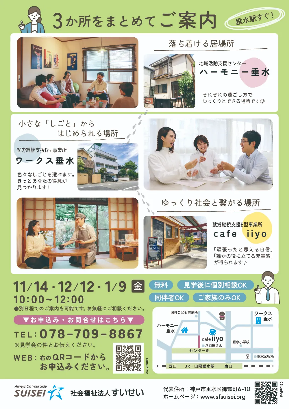 垂水駅近くの安心できる「居場所」を3か所見学・相談できます