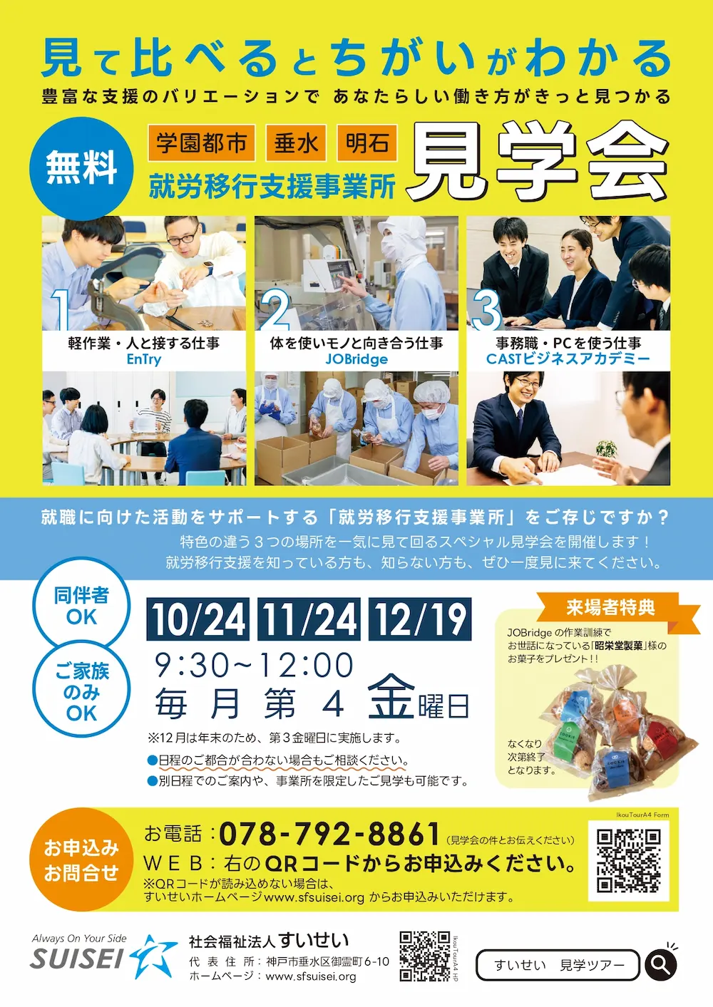 ・各就労移行支援事業所のご利用を前提とした見学会ではありません。まずはお気軽にお申込みください。